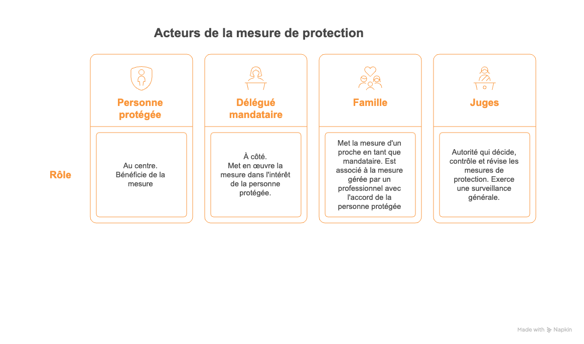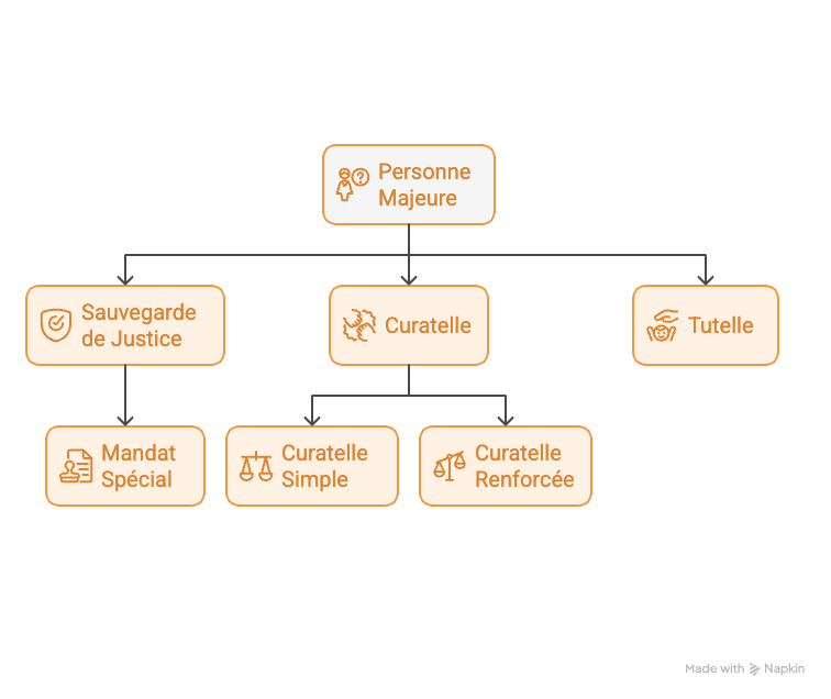 La mesure doit être proportionnelle à l’altération des facultés de la personne. Les principales mesures sont :