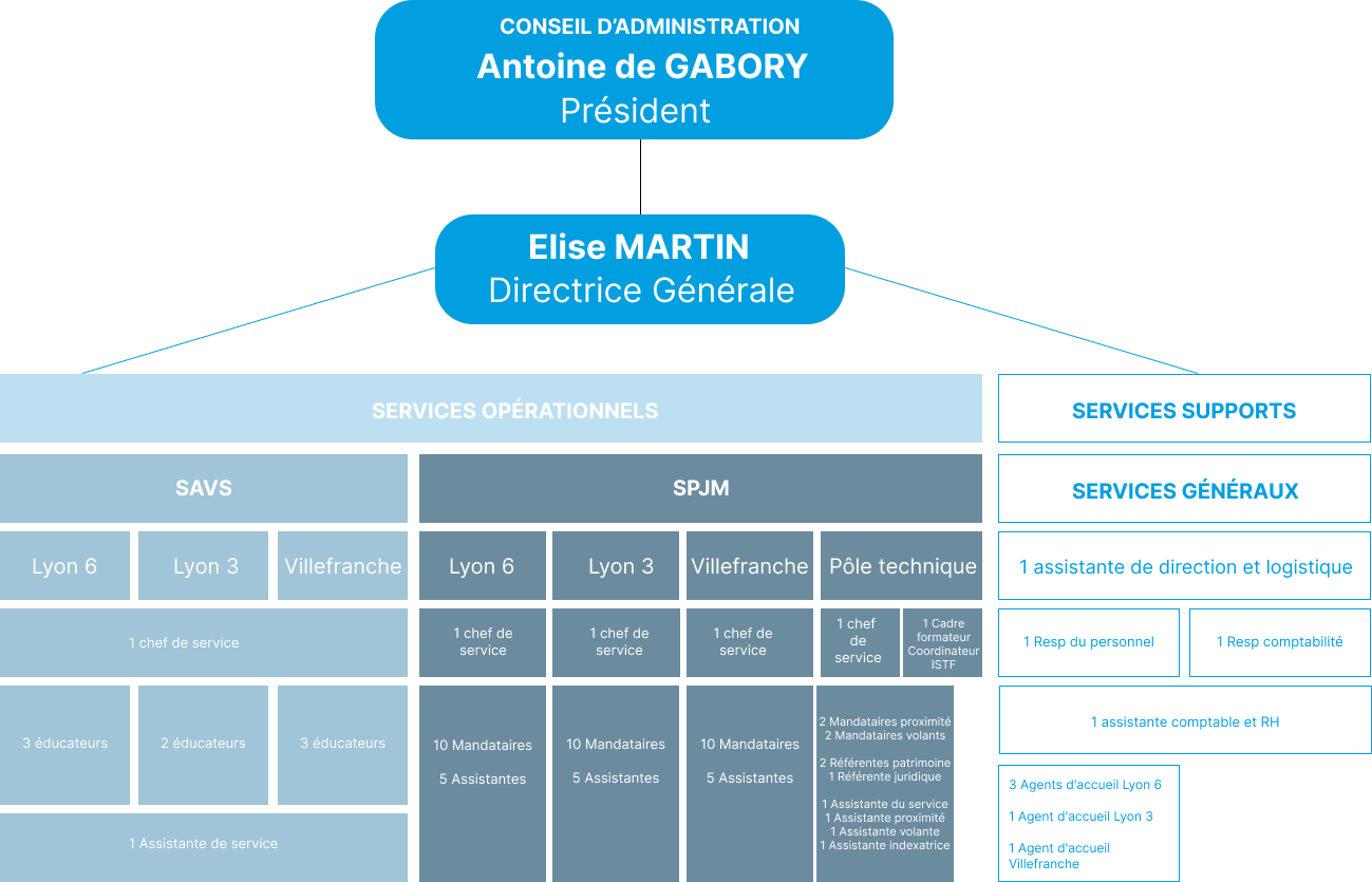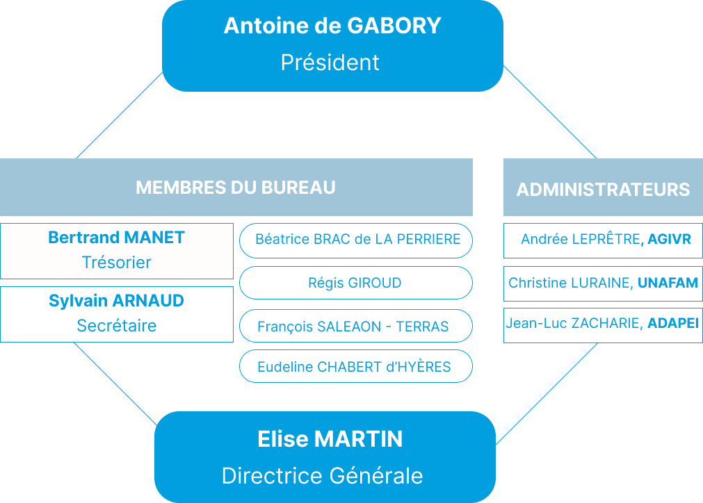 Consultez ci-dessous l’organigramme de notre Conseil d’administration et celui de notre équipe opérationnelle pour découvrir les personnes qui font vivre chaque jour nos valeurs d’accompagnement, de protection et d’inclusion.